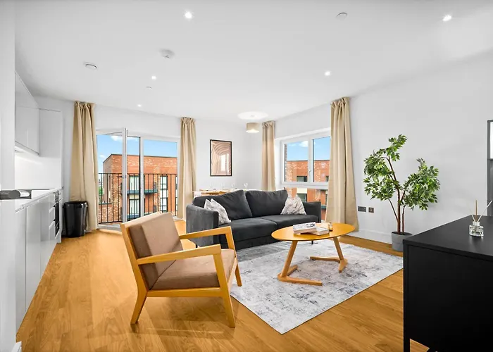 Die 93 m² großen Apartments befindet sich zudem nur 1 km vom Pen Museum & Shop und in circa 2 km Entfernung vom Birmingham Museum and Art Gallery. Die Kirche St. Martin in the Bull Ring ist etwa 10 Fahrminuten vom Apartment entfernt.